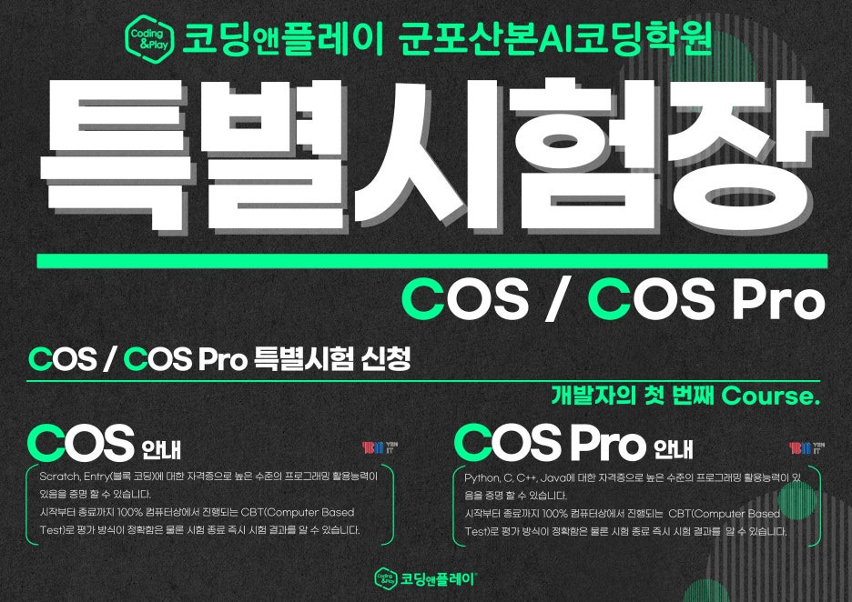 | [코딩앤플레이 군포산본AI코딩학원 ] - 2025년 COS/COS Pro 정규 시험 일정 (0) | 2025.02.17 |