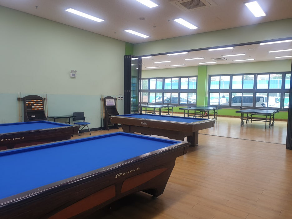 또한 디미고에는 대규모의 헬스장과 스쿼시, 탁구, 당구 등 다양한 스포츠 활동을 할 수 있는 체육시설이 갖추어져 있어요. 학기별 1인 1스포츠 활동을 진행 한다고 하네요.