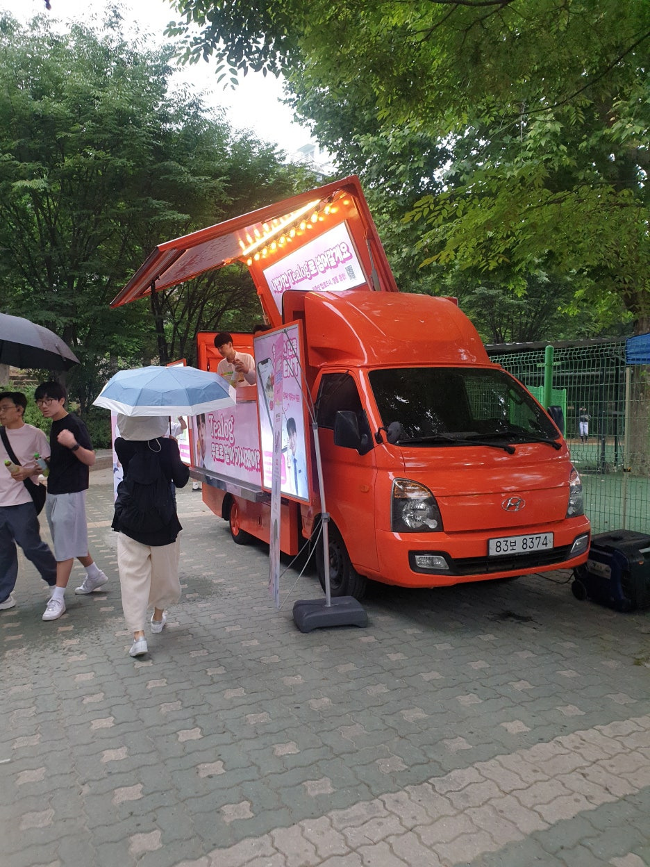 설명회과 열리는 체육관 입구에 있는 푸드트럭에서 먼저 음료를 나눠 주셨어요.