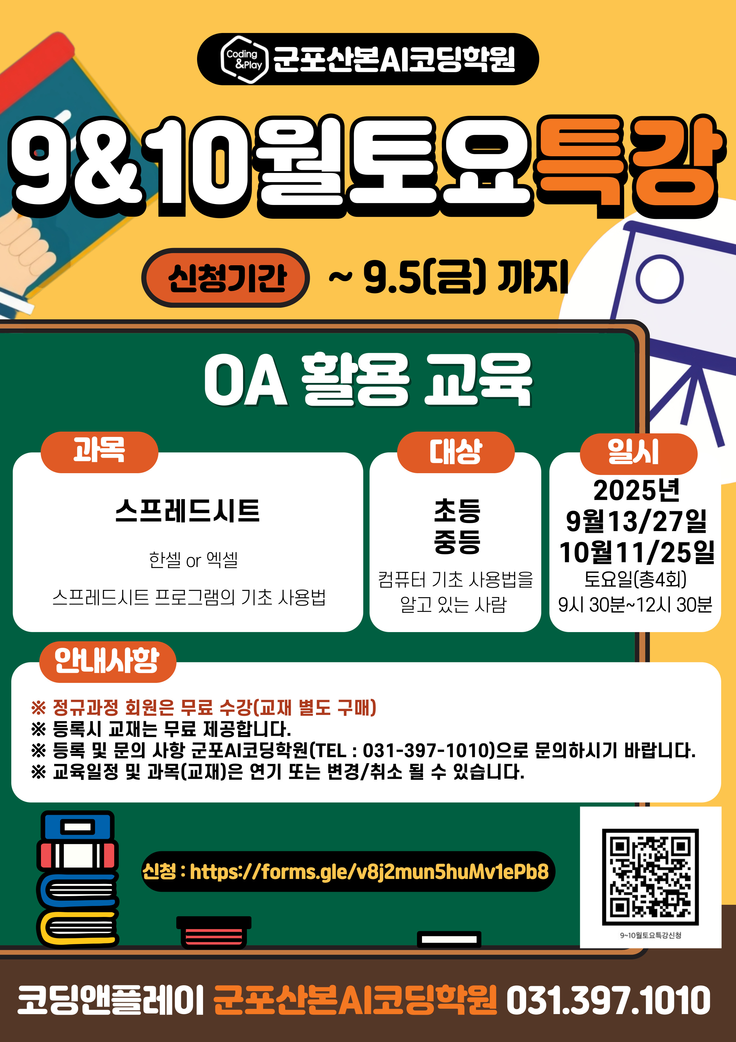 코딩앤플레이 군포산본AI코딩학원 토요특강 수업 신청 (수업일 : 2025년 9월 13일/27일, 10월 11일/25