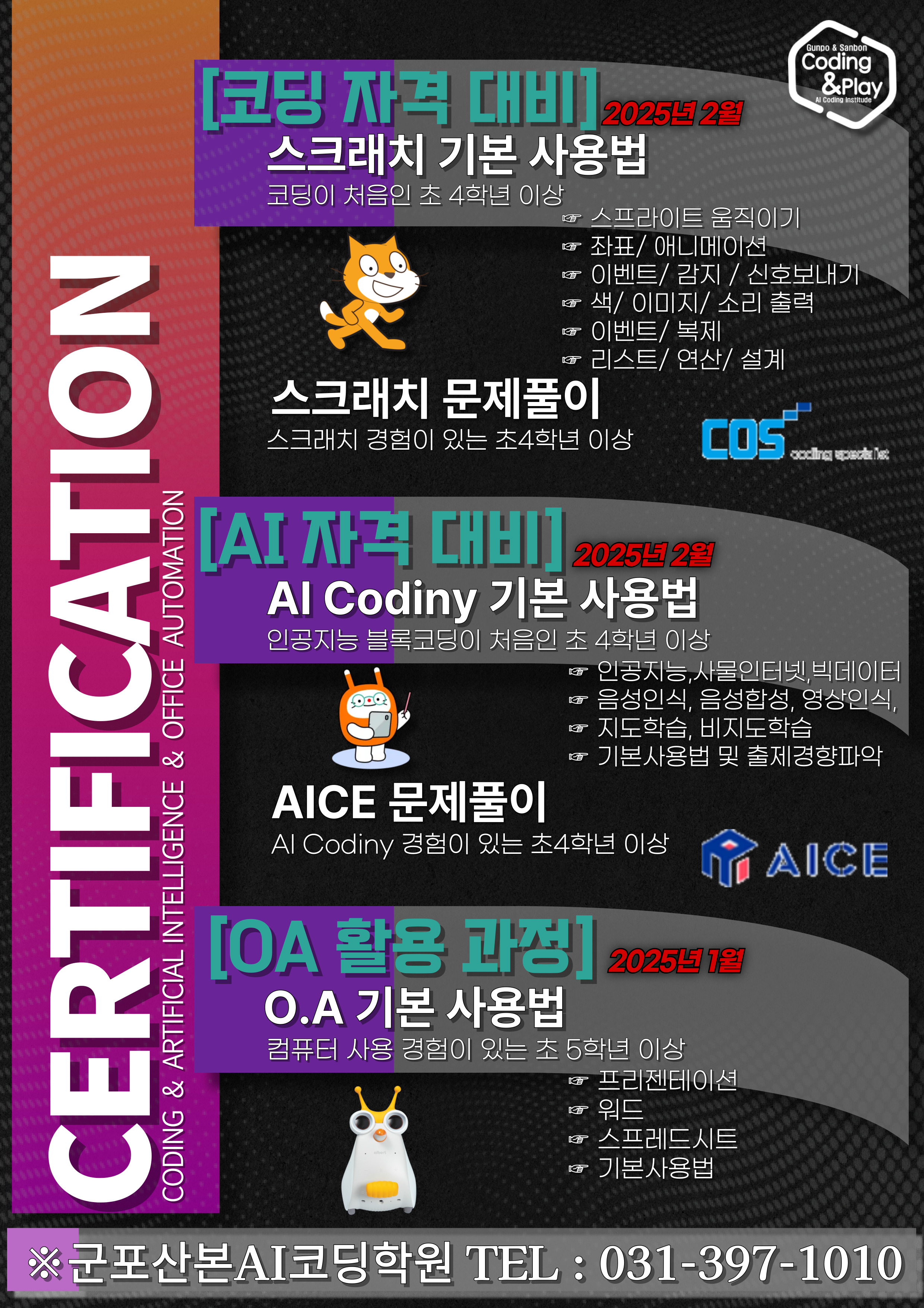 코딩앤플레이 군포산본AI코딩학원에서 시작하세요.^^