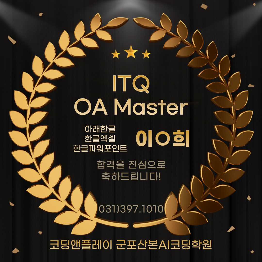 자세한 사항이 궁금하다면!!!^^[코딩앤플레이 군포산본AI코딩학원]우리 아이 첫 코딩 교육!!!코딩교육 처음 부터 제대로코딩앤플레이 군포산본AI코딩학원에서 시작하세요.^^[상담/문의]TEL : 031-397-1010https://blog.naver.com/gpcoding 자격 취득을 진심으로 축하합니다.※ 학원 관련 문의 사항 ※인스타그램 https://www.instagram.com/gunpo_codingnplay/카카오채널 http://pf.kakao.com/_dcGDxb카카오채널 친구추가 http://pf.kakao.com/_dcGDxb/friend유튜브 https://www.youtube.com/@군포산본AI코딩학원문의 전화 : 031-397-1010 으로 연락 주세요!우리 아이 첫 코딩 교육!!..